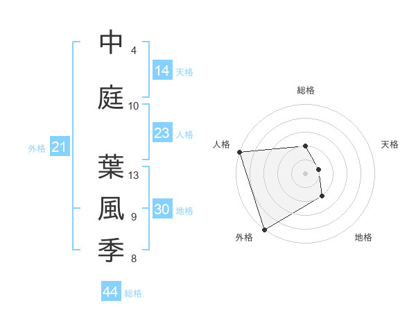 中庭 葉風季さんを姓名の画数から五運を鑑定