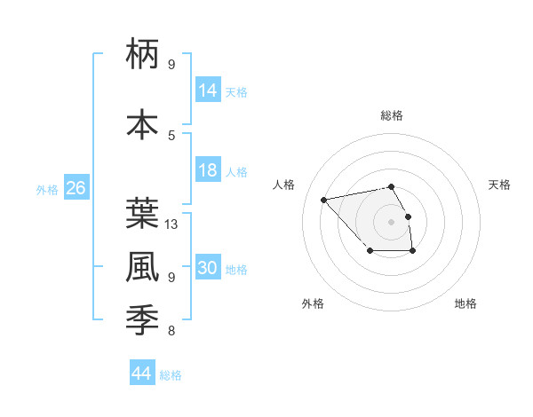 柄本 葉風季さんの総格は44画の2点!
