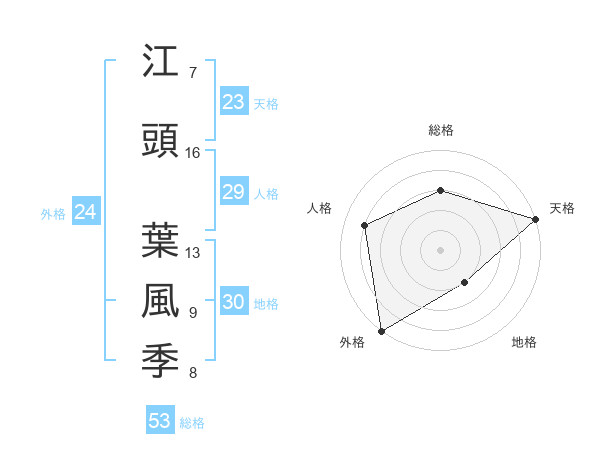 江頭 葉風季さんの外格は24画の5点!