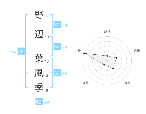 野辺 葉風季さんの総格は60画の1点!