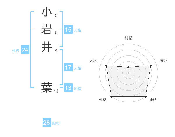 小岩井 葉さんを姓名の画数から五運を鑑定
