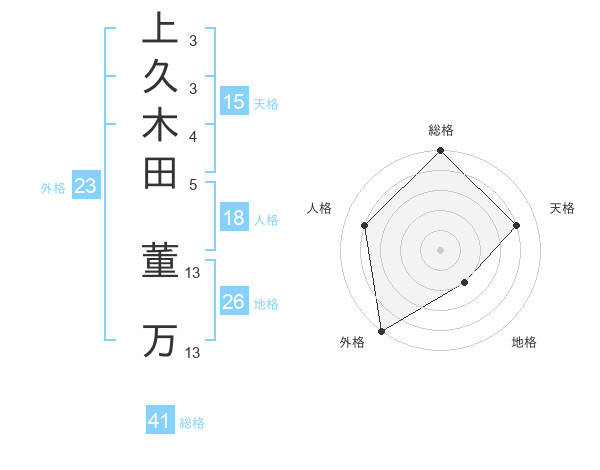 上久木田 董万さんの総格は41画の5点!