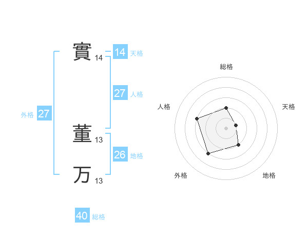 實 董万さんの総格は40画の2点!