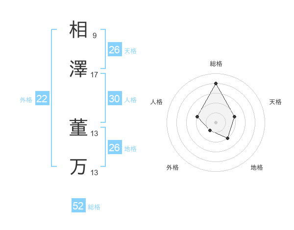相澤 董万さんの総格は52画の4点!