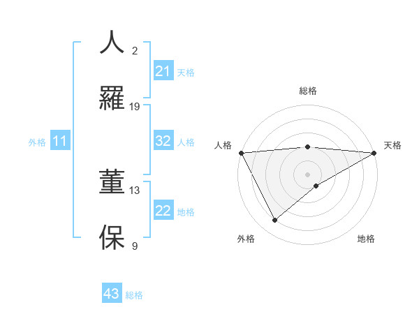 人羅 董保さんの総格は43画の2点!