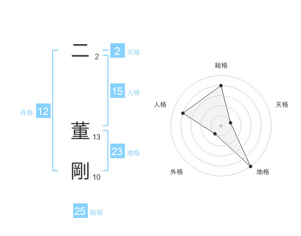 二 董剛さんの総格は25画の4点!