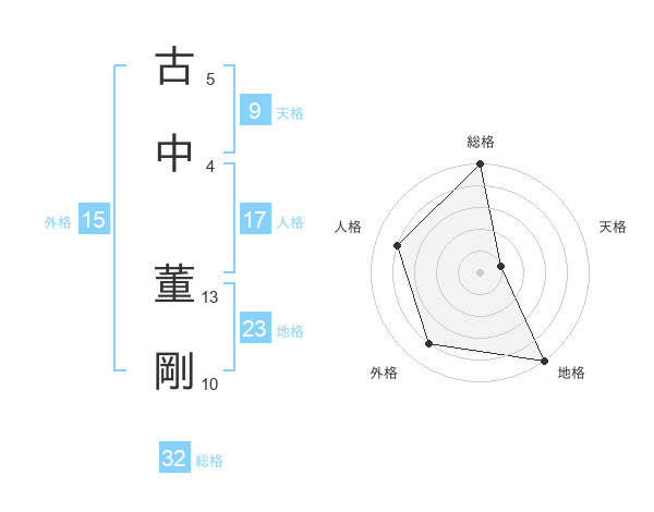 古中 董剛さんの総格は32画の5点!