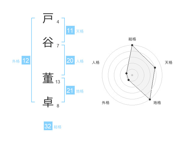 戸谷 董卓さんの総格は32画の5点!