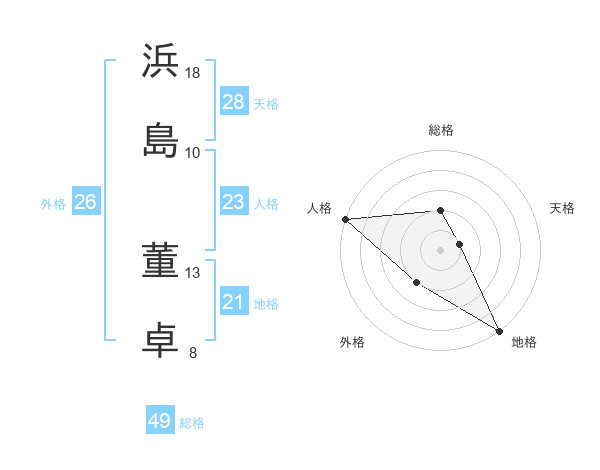 浜島 董卓さんを姓名の画数から五運を鑑定
