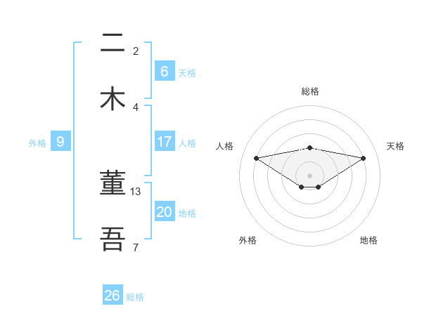 二木 董吾さんの天格は6画の4点!