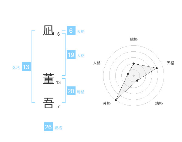 凪 董吾さんの総格は26画の2点!