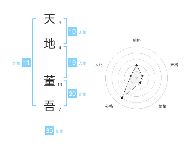 天地 董吾さんの総格は30画の2点!