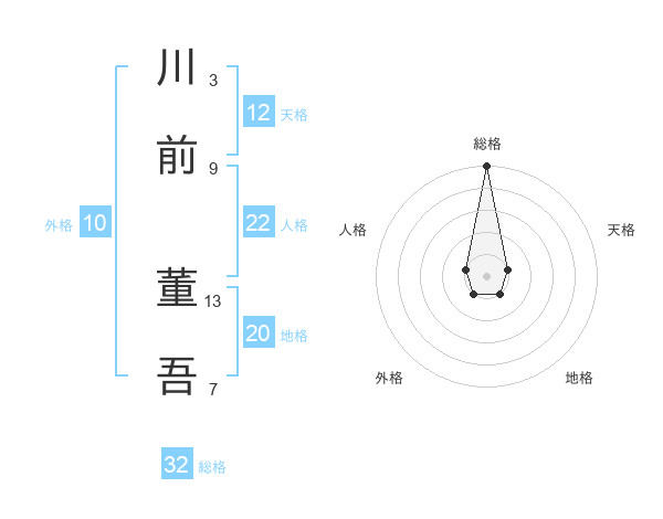 川前 董吾さんの総格は32画の5点!