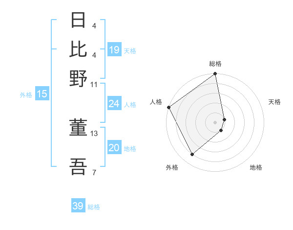日比野 董吾さんの総格は39画の5点!