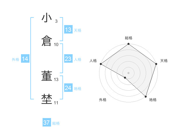 小倉 董埜さんを姓名の画数から五運を鑑定