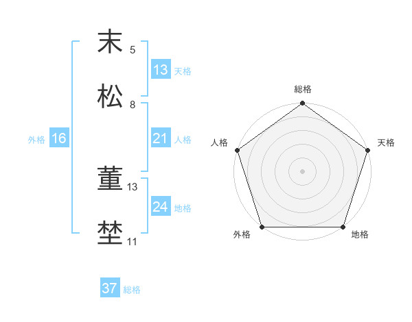 末松 董埜さんの総格は37画の5点!