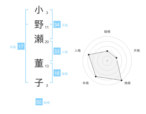 小野瀬 董子さんの総格は50画の2点!