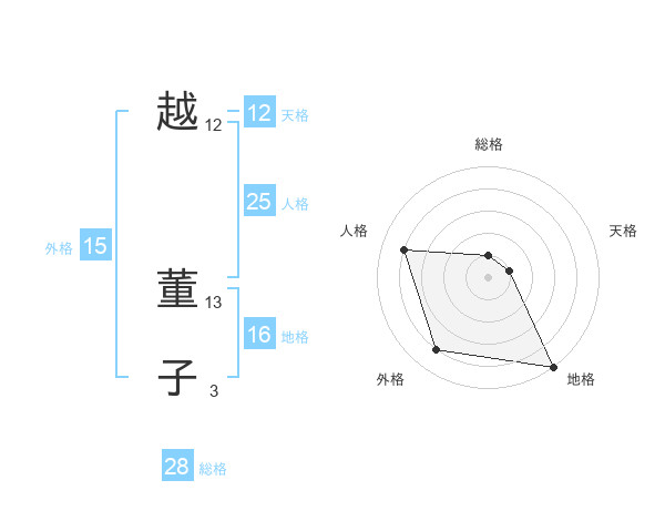 越 董子さんの総格は28画の1点!