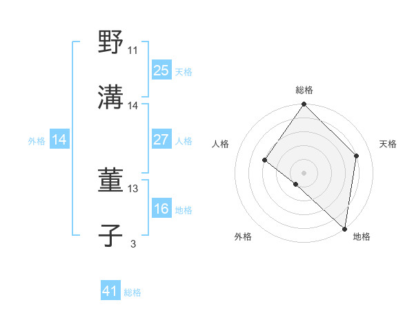 野溝 董子さんの総格は41画の5点!