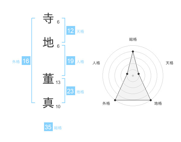 寺地 董真さんを姓名の画数から五運を鑑定
