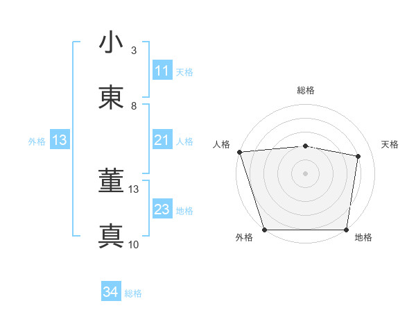 小東 董真さんの外格は13画の5点!