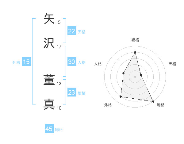 矢沢 董真さんを姓名の画数から五運を鑑定