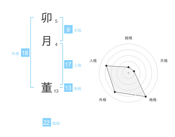 卯月 董さんの外格は18画の4点!