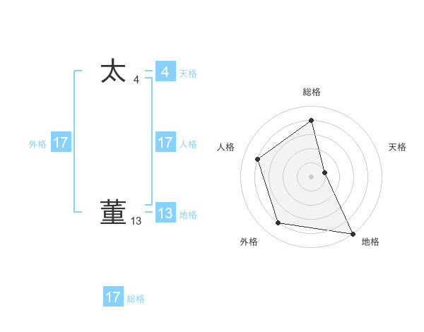 太 董さんの総格は17画の4点!
