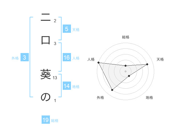 二口 葵のさんの天格は5画の4点!