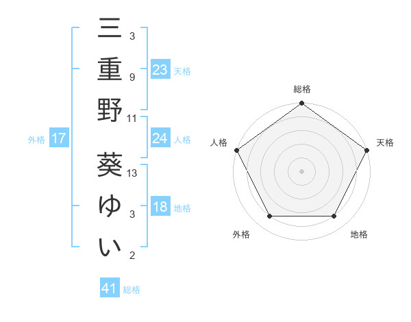 三重野 葵ゆいさんを姓名の画数から五運を鑑定