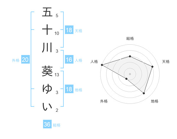 五十川 葵ゆいさんを姓名の画数から五運を鑑定
