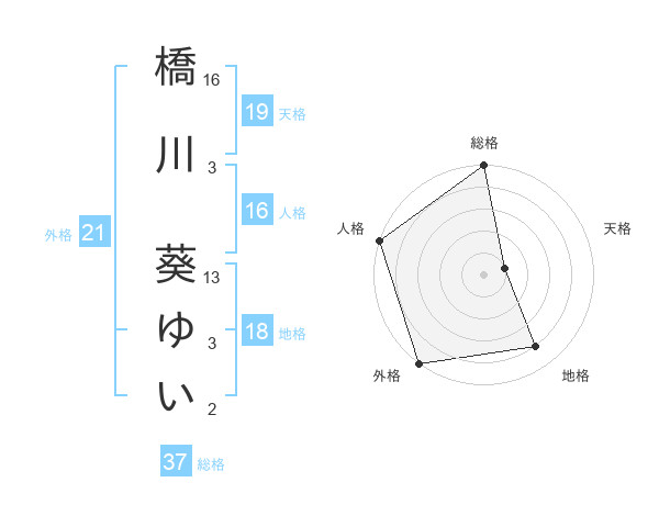 橋川 葵ゆいさんを姓名の画数から五運を鑑定