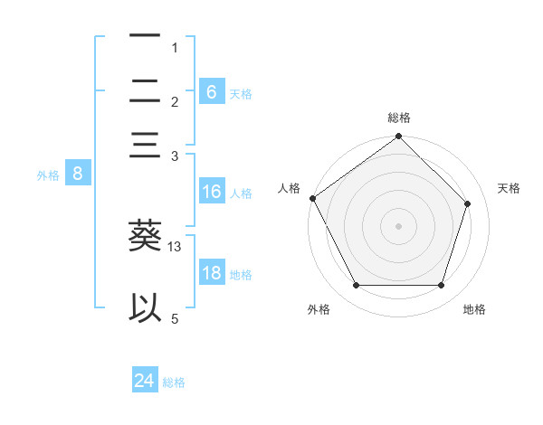 一二三 葵以さんを姓名の画数から五運を鑑定