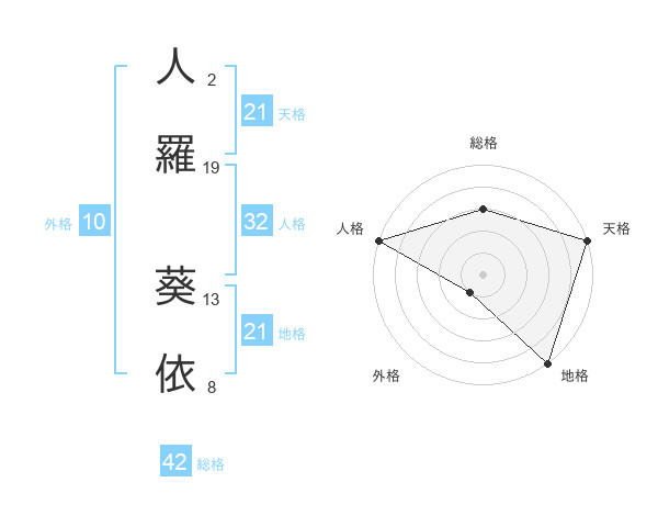 人羅 葵依さんを姓名の画数から五運を鑑定