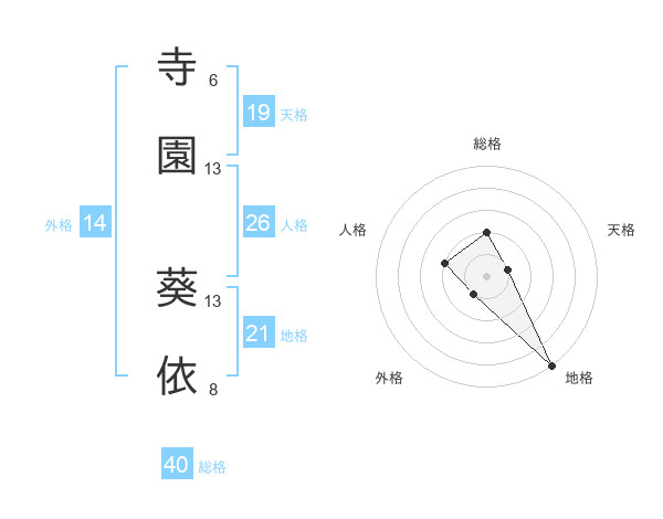 寺園 葵依さんの総格は40画の2点!