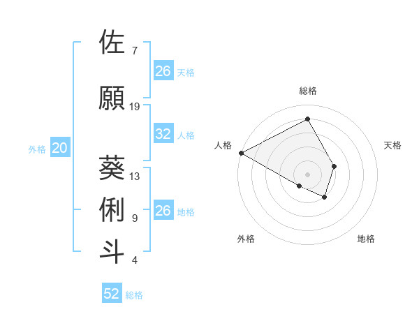 佐願 葵俐斗さんを姓名の画数から五運を鑑定