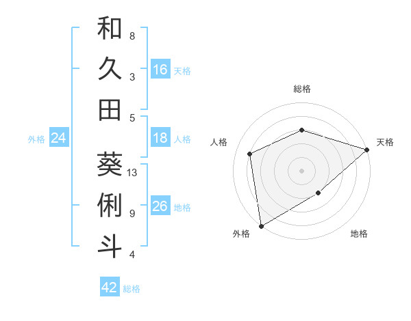 和久田 葵俐斗さんの天格は16画の5点!