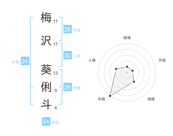 梅沢 葵俐斗さんを姓名の画数から五運を鑑定