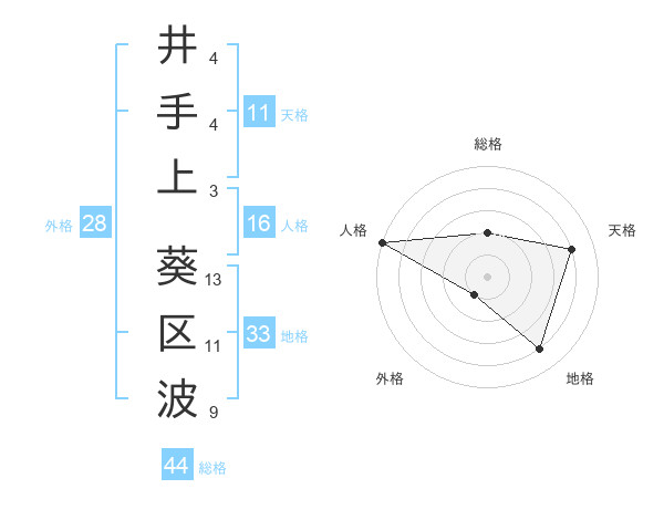 井手上 葵区波さんを姓名の画数から五運を鑑定