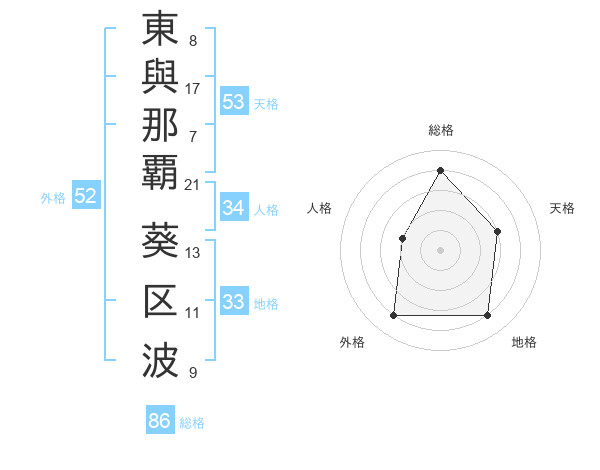 東與那覇 葵区波さんの外格は52画の4点!