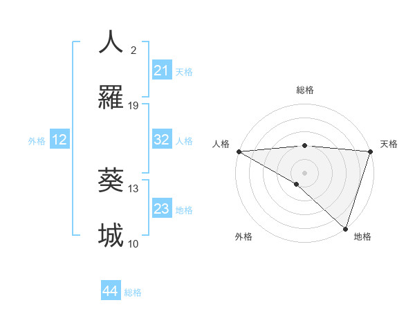人羅 葵城さんを姓名の画数から五運を鑑定