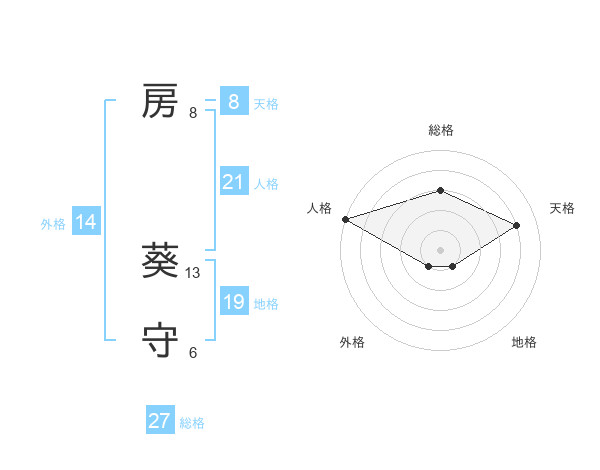 房 葵守さんの天格は8画の4点!
