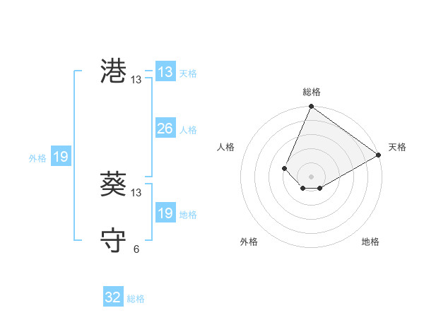 港 葵守さんの天格は13画の5点!