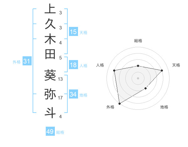 上久木田 葵弥斗さんの天格は15画の4点!