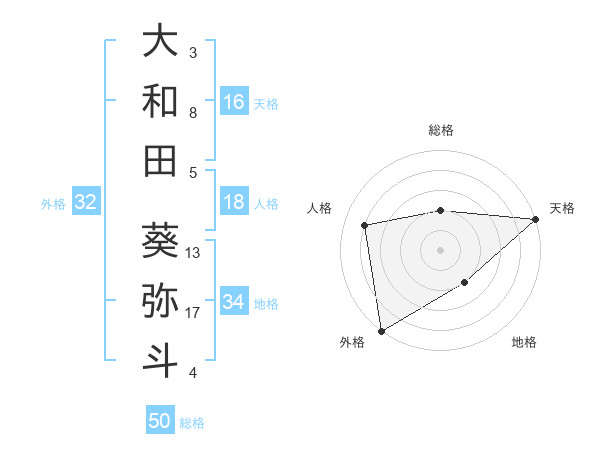 大和田 葵弥斗さんの天格は16画の5点!