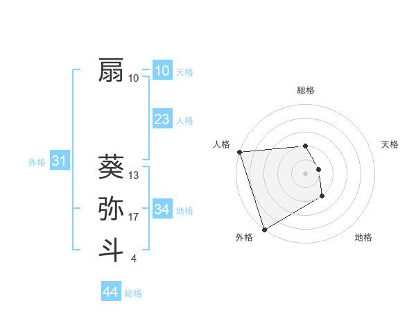 扇 葵弥斗さんの総格は44画の2点!