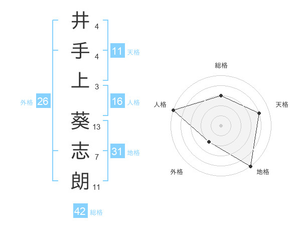 井手上 葵志朗さんを姓名の画数から五運を鑑定