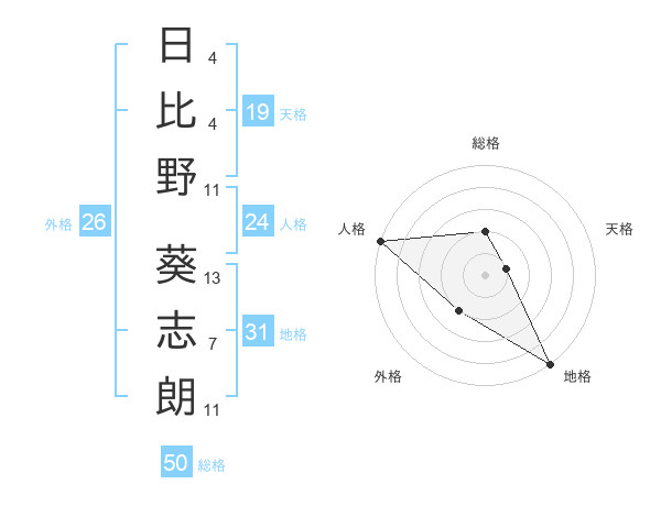 日比野 葵志朗さんの総格は50画の2点!