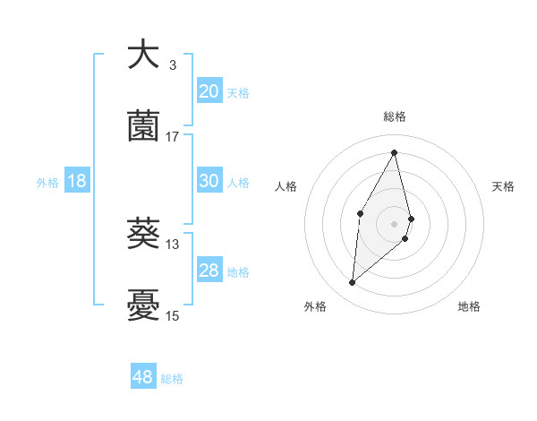 大薗 葵憂さんの総格は48画の4点!