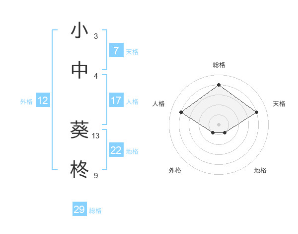 小中 葵柊さんの地格は22画の1点!